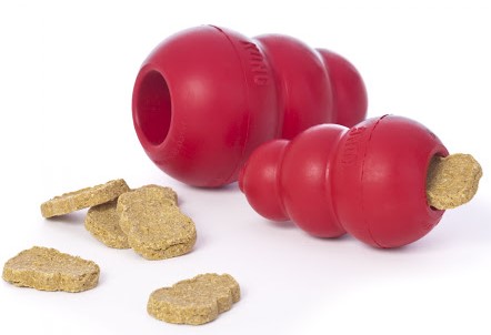 Many dog owners use food-delivery toys with their dogs. There are a wide variety of these products available, in a range of sizes, materials, and the methods they use to deliver food. Dogs enjoy these toys not only for the tasty treats that they deliver, but also because food-delivery toys provide environmental and mental stimulation (i.e. they are fun!). In this case, the researchers who developed the new palatability test chose to use the original Kong toy.
