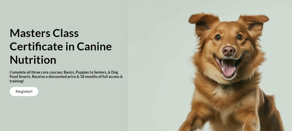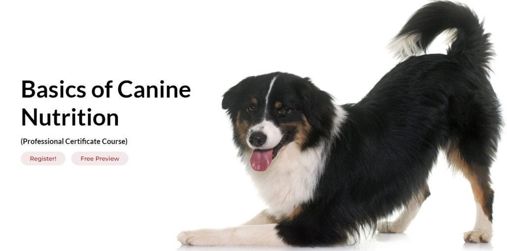 Revised for 2024 – Basics of Canine Nutrition. Updated video lectures, readings, and inclusive webinars!
